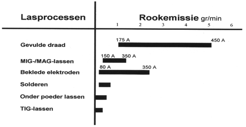 - Kies een lasmethode waarbij de minste lasrook vrij komt.