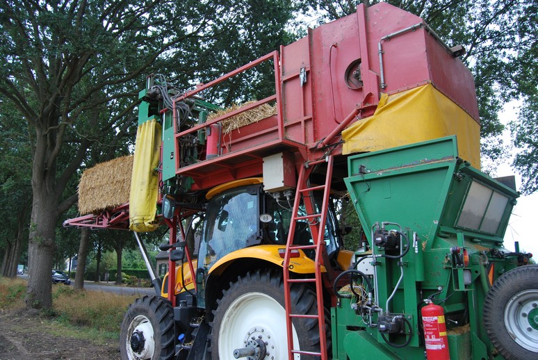 - Maak goede onderlinge afspraken tussen de trekkerchauffeur en de medewerker op het strodekdak over wanneer de machine te stoppen.