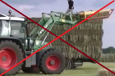 Vallende balen vormen ook een groot risico. Dat kan gebeuren nadat er van een instabiel geworden lading de spanbanden losmaakt worden of doordat er met een verreiker balen van de wagen afgetikt worden of door balen die alsnog beginnen te schuiven.
