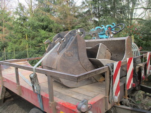 - Laat medewerkers graafbakken altijd gezekerd op een bakkenwagen vervoeren.