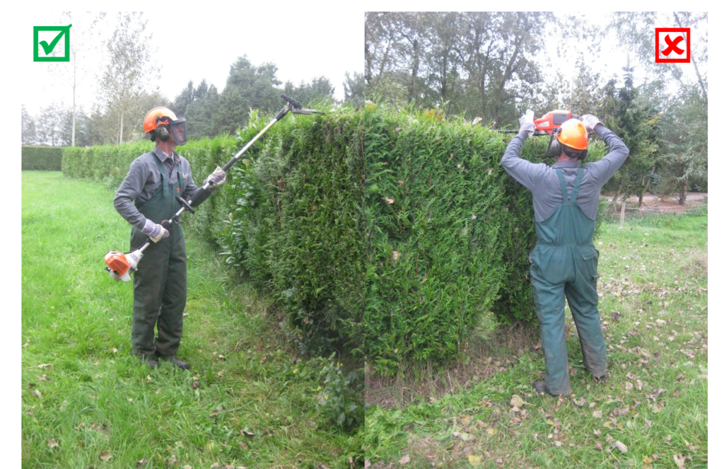 - een ergonomische en goed afgestelde draagstel van de bladblazer of ander apparaat.
